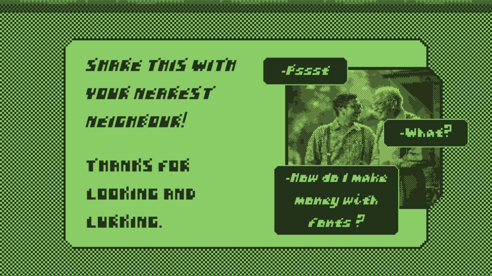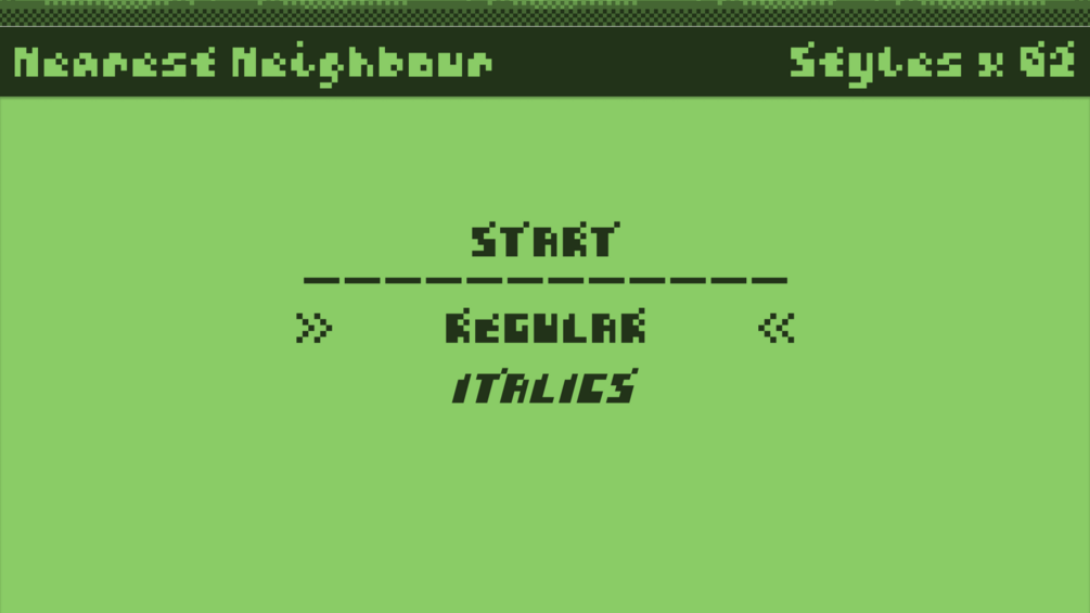 It's the 1980s. You're looking for the sleekest, curviest and most raddest font around. Nearest Neighbour is your chance to make those pixelated displays work for you.